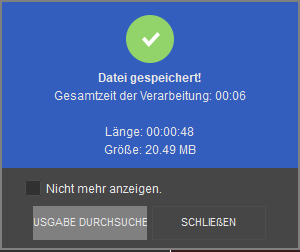 Nach Abschluss der Bearbeitung wird ein Fenster angezeigt. Klicken Sie auf die Schaltfläche "Ausgabe durchsuche".