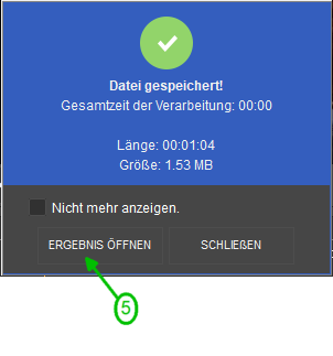 Um den Extraktionsvorgang zu starten, klicken Sie auf die Schaltfläche «Speichern».